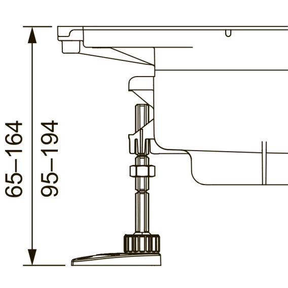 Монтажные опоры для сифона TECEdrainprofile, для быстрого выравнивания по высоте и фиксации положения при установке на уровне с необработанными поверхностями. Диапазон регулировки сифона 95– 194 мм (расстояние от нижнего края опор до верхнего края сифона или верхнего края бесшовного пола).