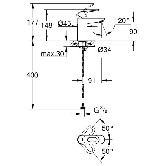 Смеситель для раковины без донного клапана Grohe BauFlow 23337000