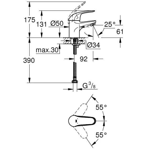 Смеситель для раковины без донного клапана Grohe Euroeco 32734000