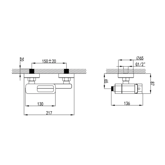 Душевая система Rose R1836T-6 315x210 мм, со смесителем, оружейная сталь