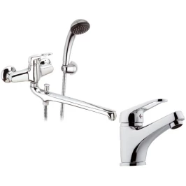 Крепление, Аэратор, Гибкая подводка, Металлическая розетка, Эксцентрики, Душевой шланг, Душевая лейка, Держатель для душевой лейки, Смеситель