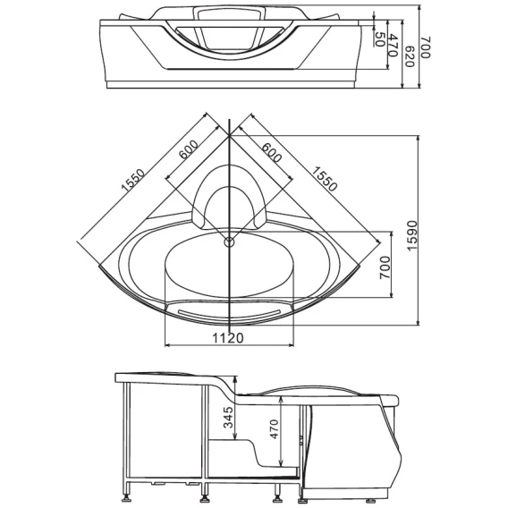 Акриловая ванна 155x155 см Gemy G9025 II C
