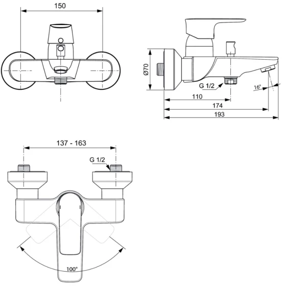 Смеситель для ванны Ideal Standard Connect Air A7033AA