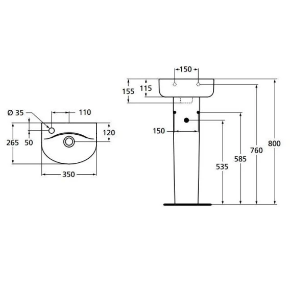 Раковина 35 см Ideal Standard Connect Arc E791401