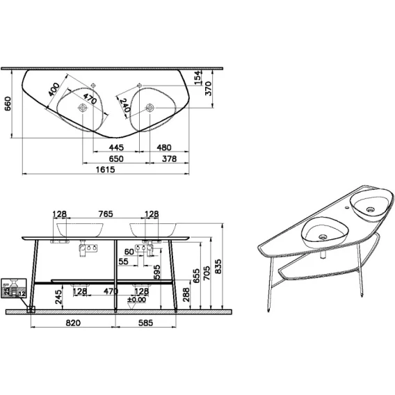 Консоль с раковинами VitrA Plural 64043 со столешницей, темный дуб
