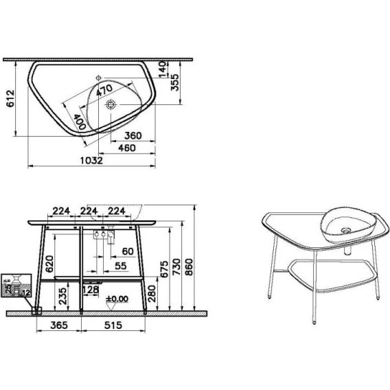 Консоль с раковиной VitrA Plural 62581 R, со столешницей, белый матовый