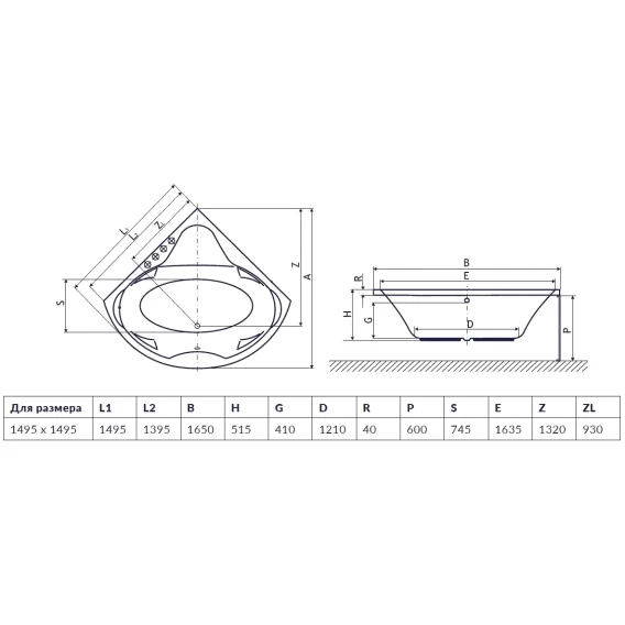 Акриловая ванна 149,5x149,5 см Excellent Konsul WAEX.KON15WH