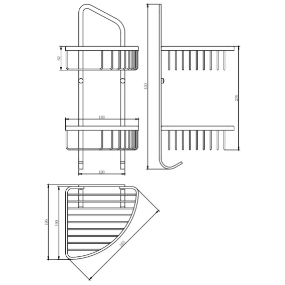 Полка угловая 20,5x20,5 см Omnires Uni UN10332CR