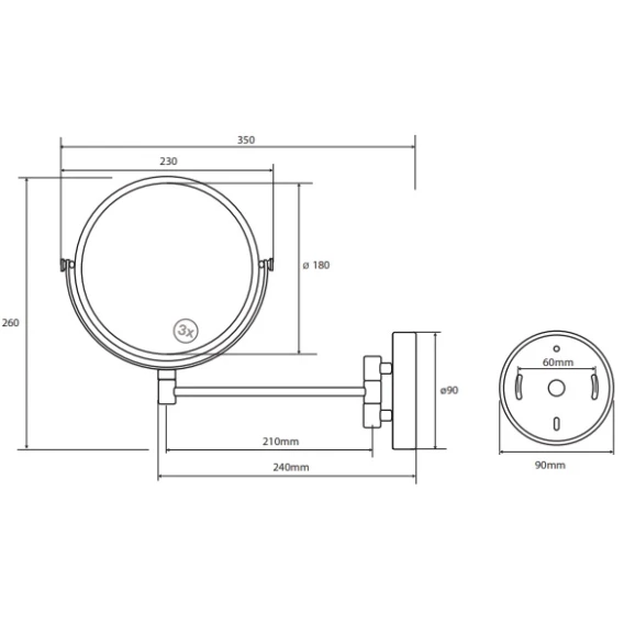 Косметическое зеркало x 3 Remer Bagno RB635CR