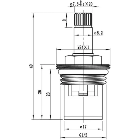 Кран-букса керамическая. Посадочное место 20 шлицов. Угол поворота 180 градусов. Красная маркировка.