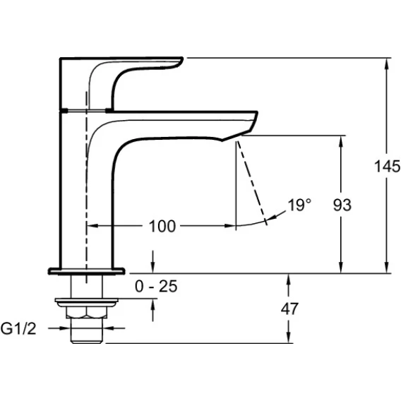 Кран холодной воды для раковиныВстроенный аэратор сантиизвестковым покрытиемСтандарт подводки - 1/2''Монтаж: на 1 отверстиеВысота - 145 ммВысота излива - 93 ммДлина излива - 100 ммРасход воды - 5 л/минЦвет: хром