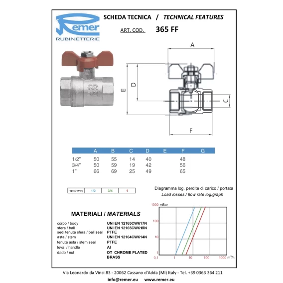 Кран шаровой 3/4" Remer Full-Flow 365FF34