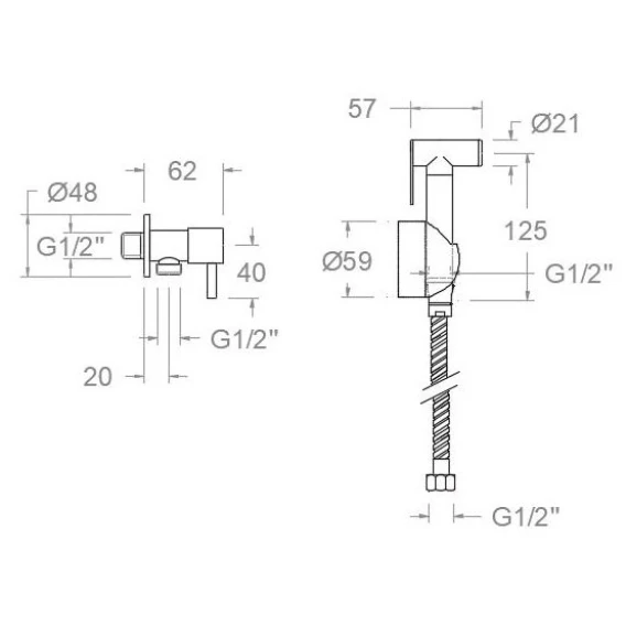 Душевой шланг, Душевая лейка, Держатель для душевой лейки, Угловой вентиль