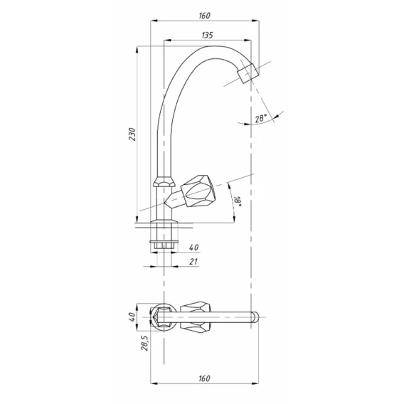 Длина излива 13.5 см