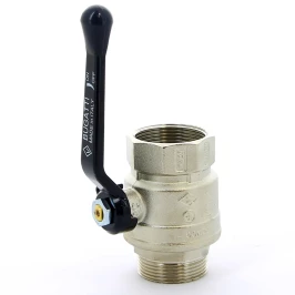 Кран шаровый латунный, стандартный, резьбы внутренняя - наружная по ISO 228/1.Ручка - рычаг из алюминия