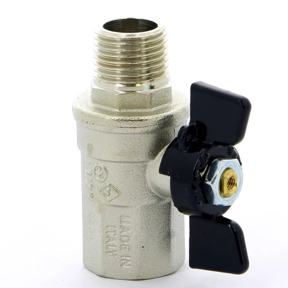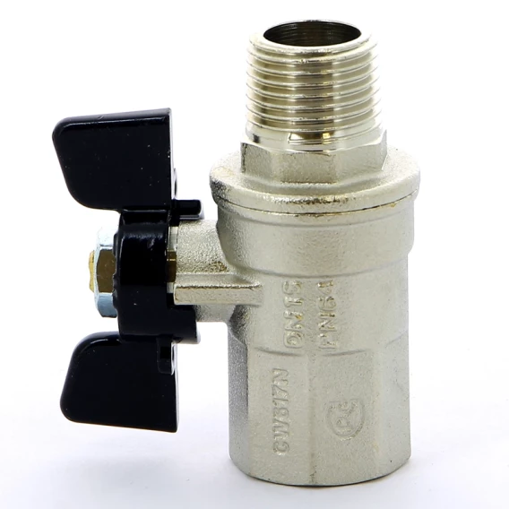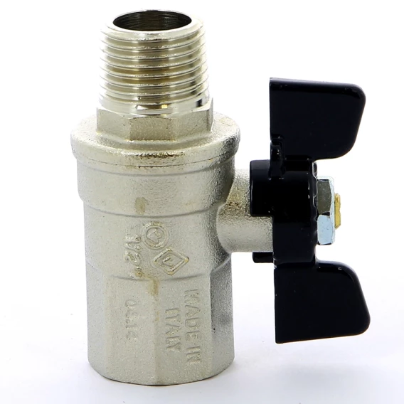 Кран шаровой латунный, усиленного типа, резьбы наружная - внутренняя по ISO 7:2000Ручка - "бабочка" из алюминия