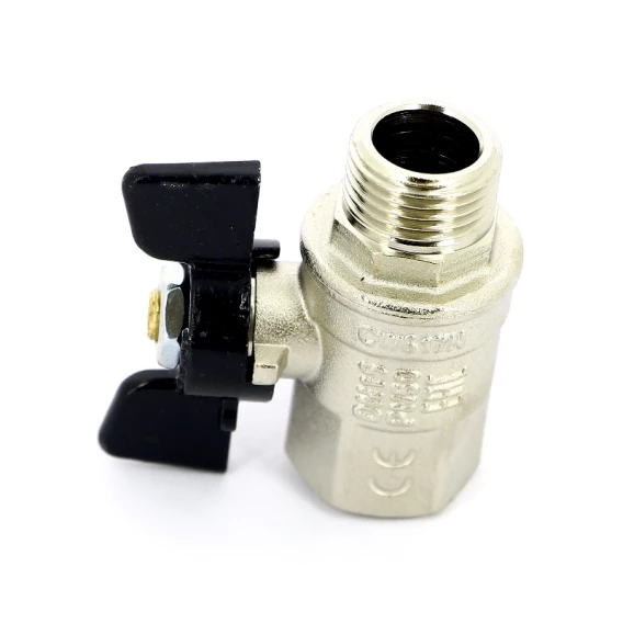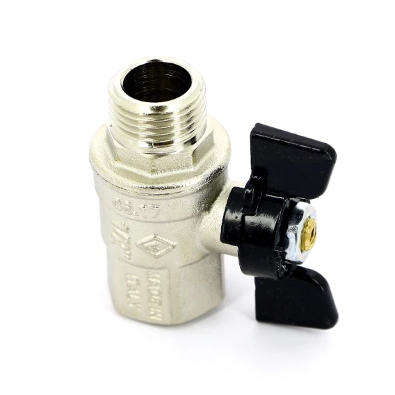 Кран шаровой латунный, полнопроходной, резьбы наружная - внутренняя по ISO 228/1Ручка - "бабочка" из алюминия