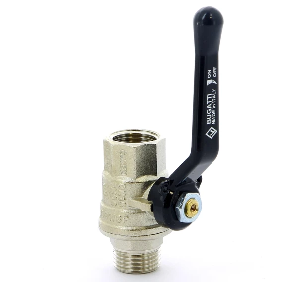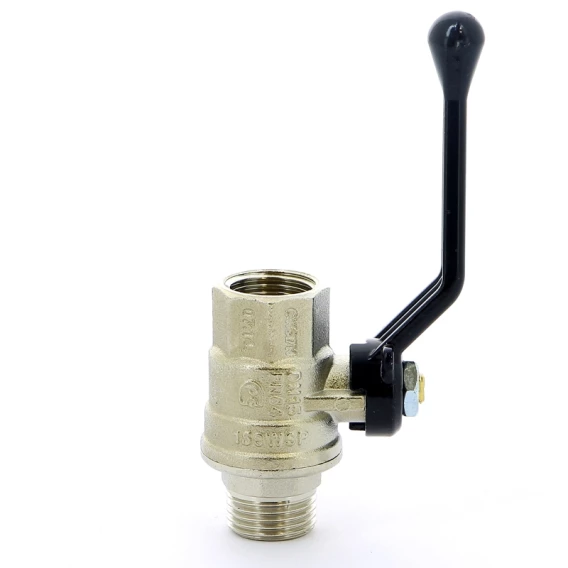 Кран шаровой латунный, полнопроходной, резьбы наружная - внутренняя по ISO 228/1Ручка - рычаг из алюминия