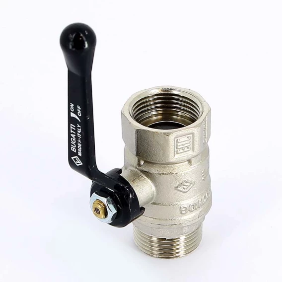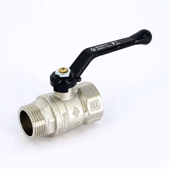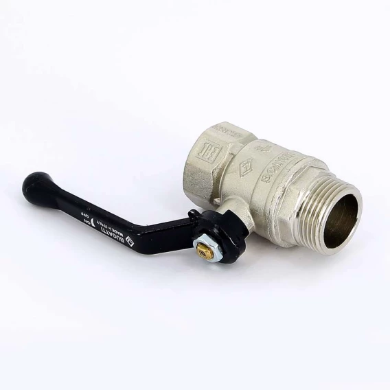 Кран шаровый латунный, стандартный, резьбы внутренняя - наружная по ISO 228/1.Ручка - рычаг из алюминия