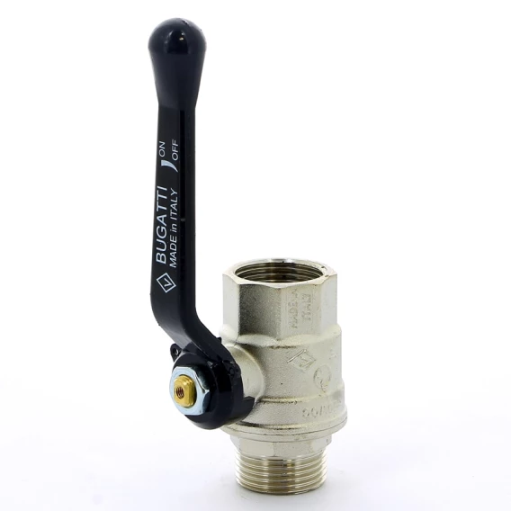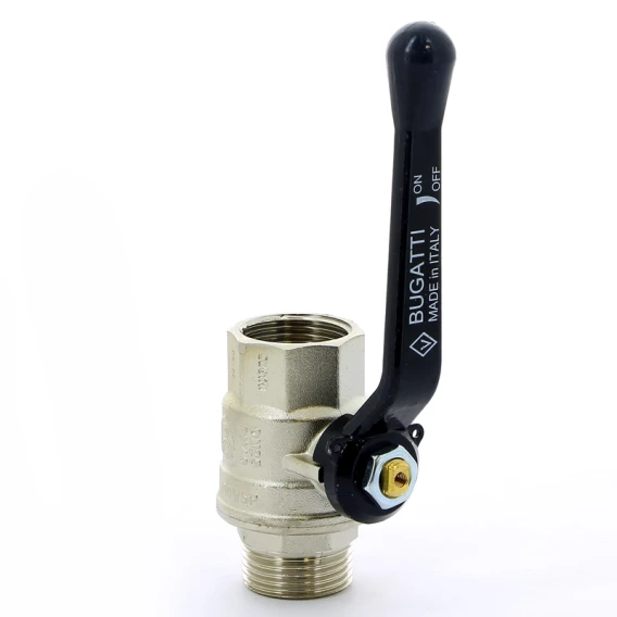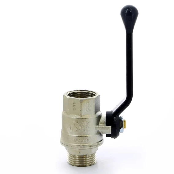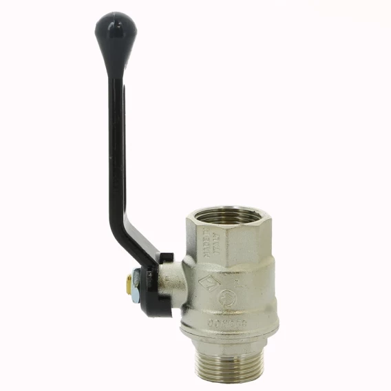 Кран шаровой латунный, полнопроходной, резьбы наружная - внутренняя по ISO 228/1Ручка - рычаг из алюминия