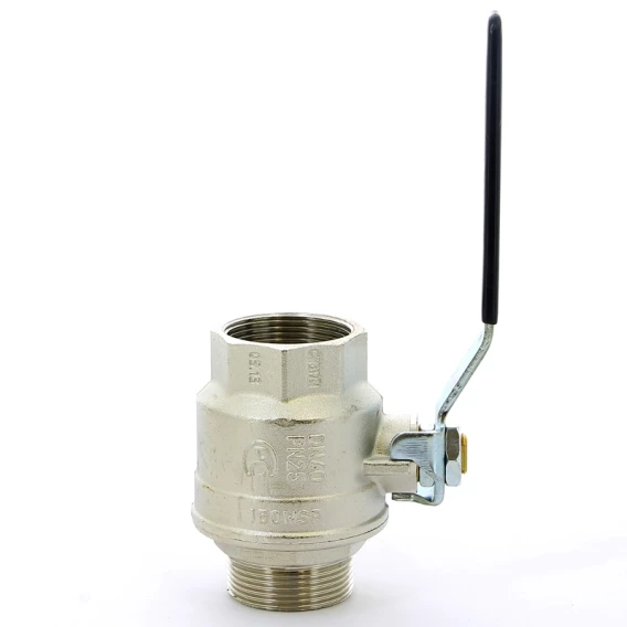 Кран шаровый латунный, полнопроходной, резьбы наружная - внутренняя по ISO 228/1.Ручка - рычаг из стали