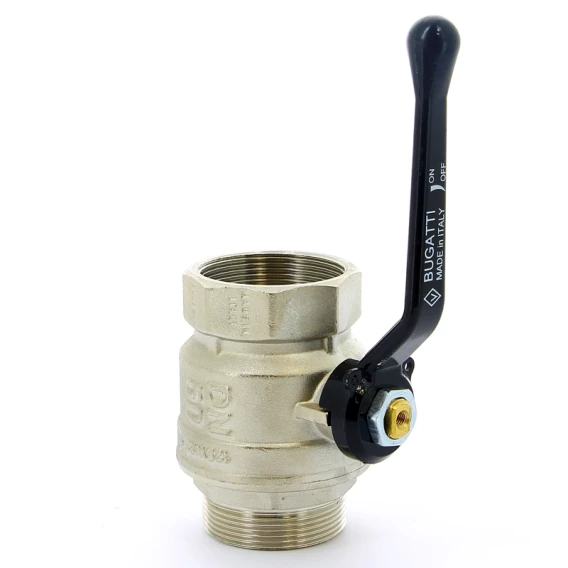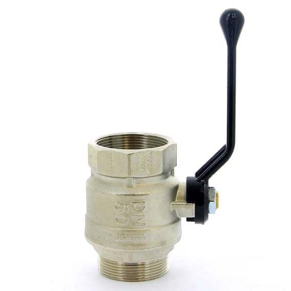 Кран шаровый латунный, стандартный, резьбы внутренняя - наружная по ISO 228/1.Ручка - рычаг из алюминия