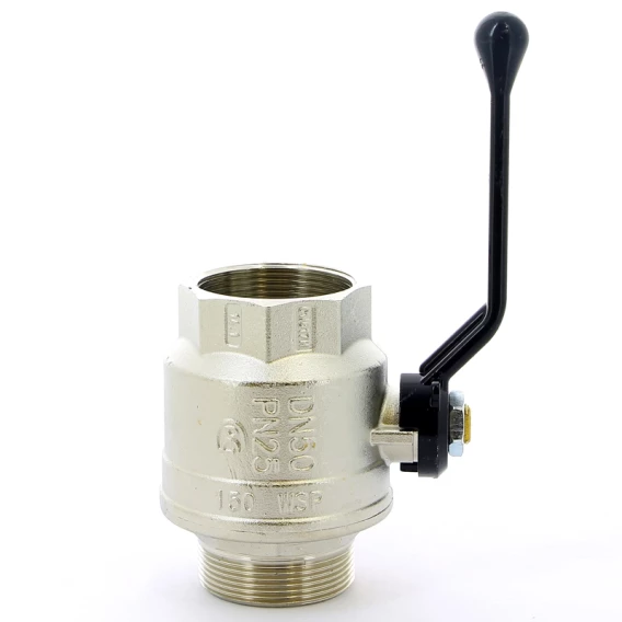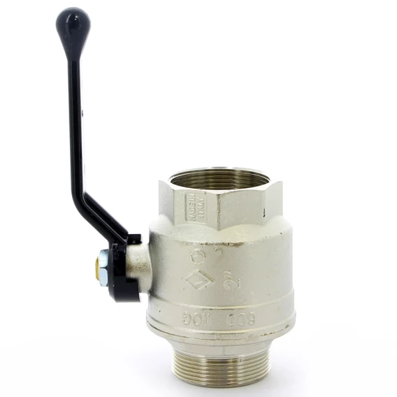 Кран шаровой латунный, полнопроходной, резьбы наружная - внутренняя по ISO 228/1Ручка - рычаг из алюминия