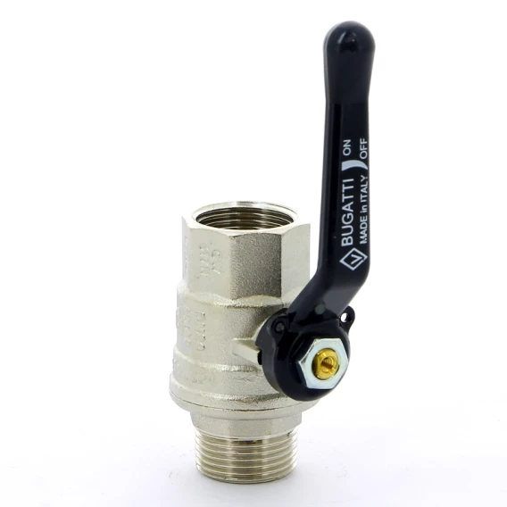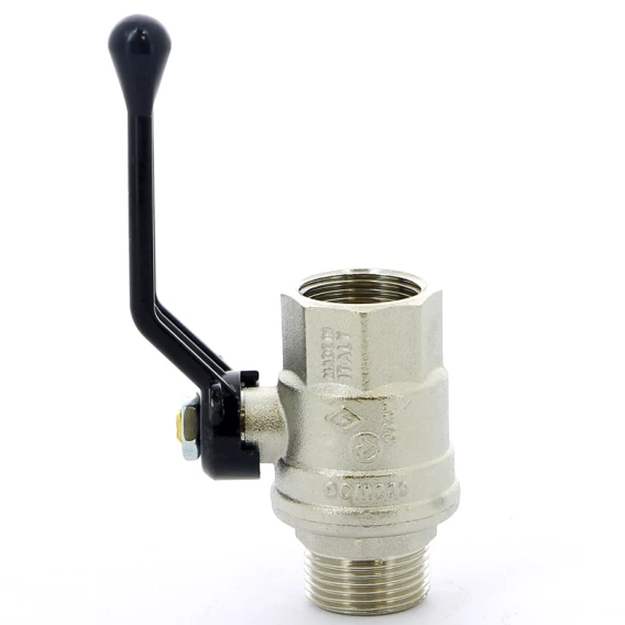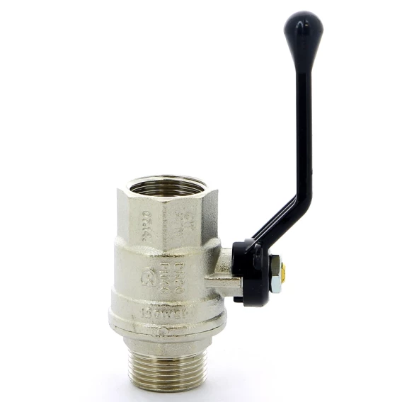Кран шаровой латунный, полнопроходной, резьбы наружная - внутренняя по ISO 228/1Ручка - рычаг из алюминия