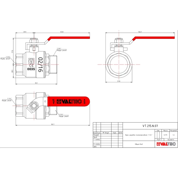 Кран шаровой 1"1/4 Valtec Base VT.215.N.07