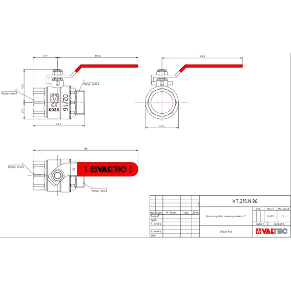 Кран шаровой 1" Valtec Base VT.215.N.06