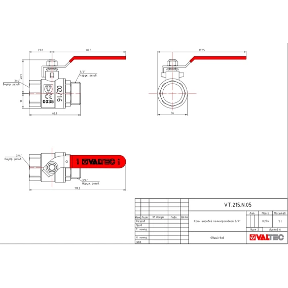 Кран шаровой 3/4" Valtec Base VT.215.N.05