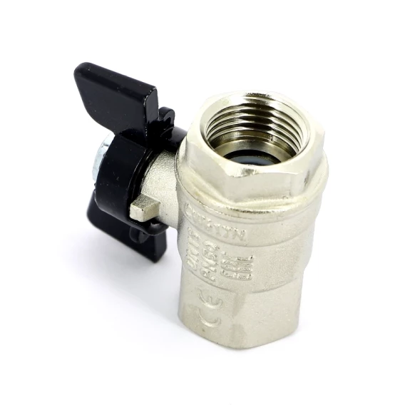 Кран шаровой латунный, полнопроходной, резьбы внутренняя - внутренняя по ISO 228/1Ручка - "бабочка" из алюминия