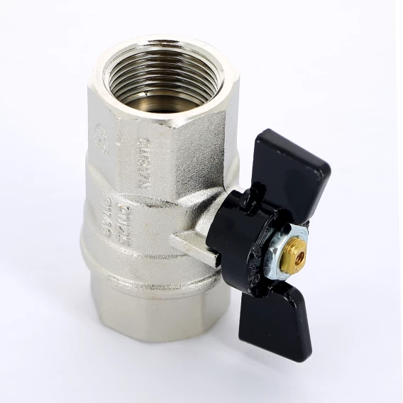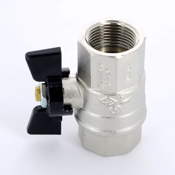 Кран шаровой латунный, усиленного типа, резьбы внутренняя - внутренняя по ISO 7:2000. Ручка - "бабочка" из алюминия