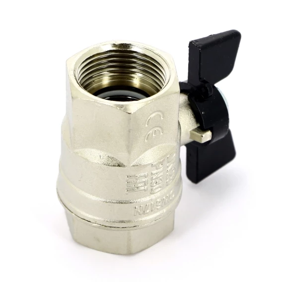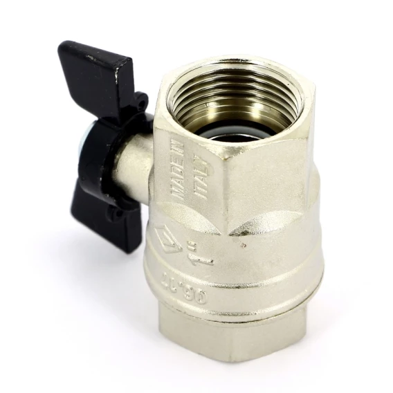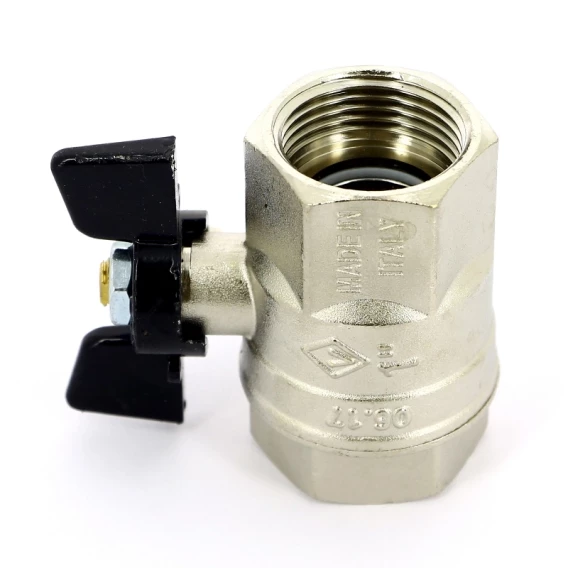 Кран шаровой латунный, полнопроходной, резьбы внутренняя - внутренняя по ISO 228/1Ручка - "бабочка" из алюминия