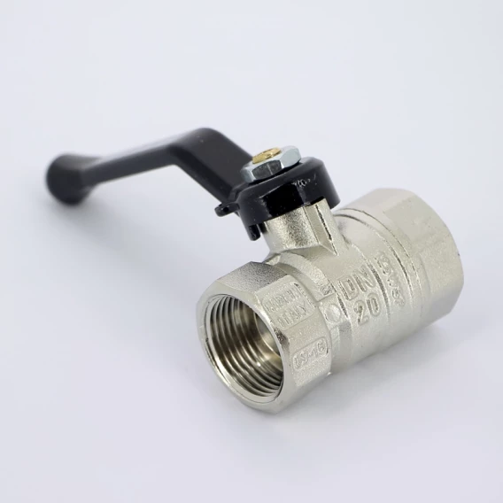 Кран шаровый латунный, стандартный, резьбы внутренняя - внутренняя по ISO 228/1. Ручка - рычаг из алюминия