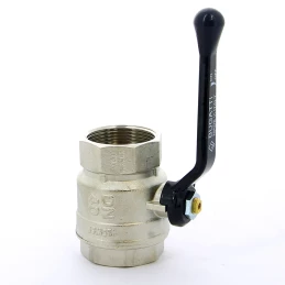 Кран шаровый латунный, стандартный, резьбы внутренняя - внутренняя по ISO 228/1. Ручка - рычаг из алюминия
