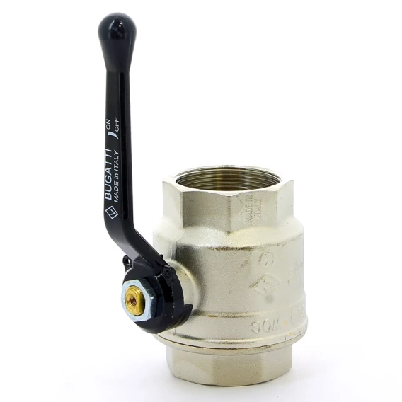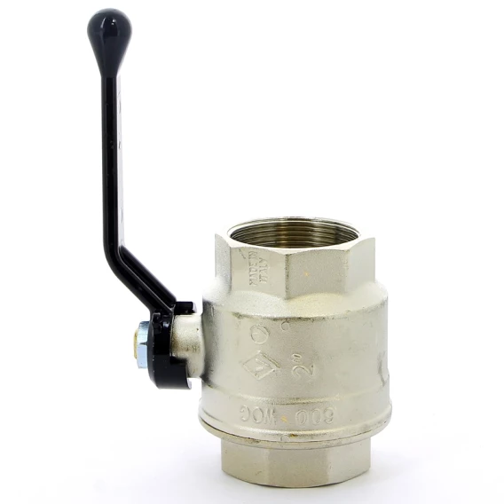 Кран шаровой латунный, полнопроходной, резьбы внутренняя - внутренняя по ISO 228/1Ручка - рычаг из алюминия