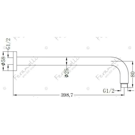Кронштейн для верхнего душа Feramolli Sole S765CN 400 мм, настенный, никель матовый