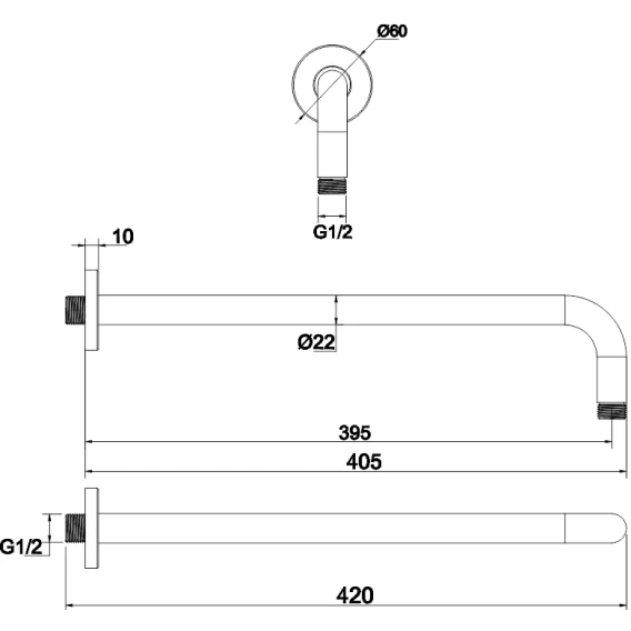 Кронштейн для верхнего душа Whitecross Y Y1310NIB 395 мм, настенный, никель матовый