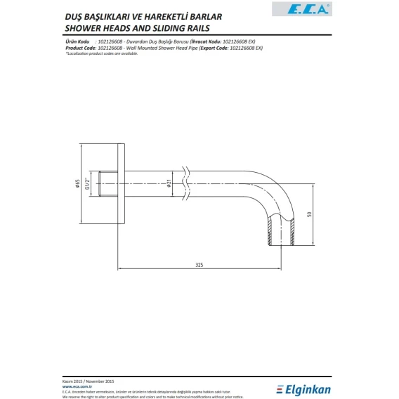 Кронштейн для душа 325 мм E.C.A Shower Heads 102126608EX