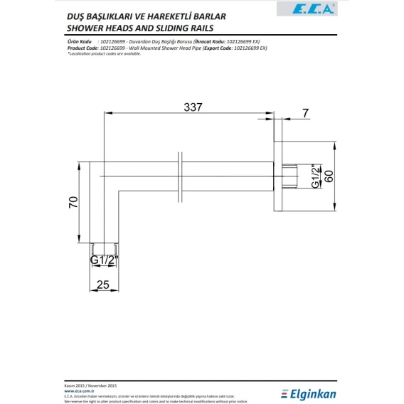Кронштейн для душа 337 мм E.C.A Shower Heads 102126699EX