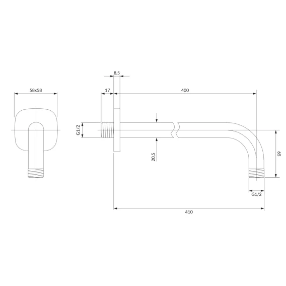 • подключение верхнего душа: 1/2”