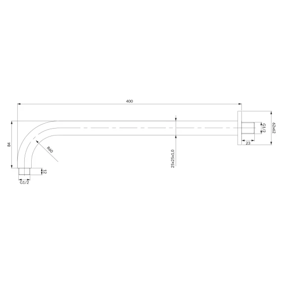 • подключение верхнего душа: 1/2”