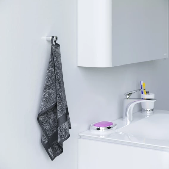 Необычный латунный крючок округлой формы, но мне такой стиль нравится. Взяла несколько. Хорошо подошли под общий стиль в ванной комнате. Полотенца и даже домашняя легкая одежда с них не падают.