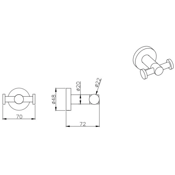Крючок Aquatek Вега AQ4002CR двойной, для ванны, хром