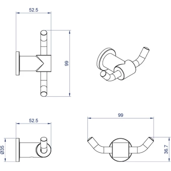 Крючок Azario Forny AZ-88305 двойной, для ванны, хром