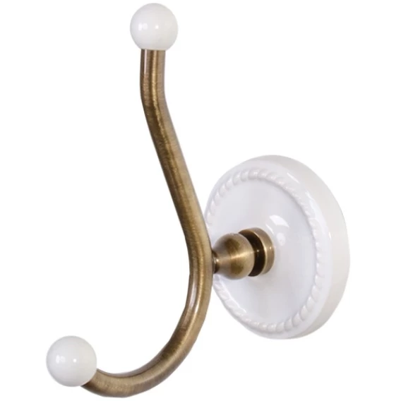 Крючок Devon&Devon Dorothy DOR413BR двойной, для ванны, состаренная бронза/белый