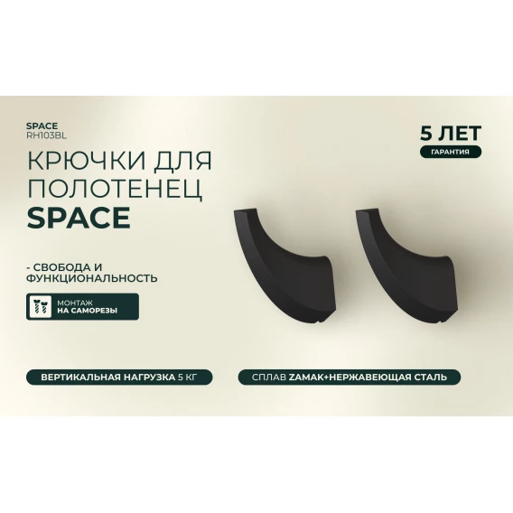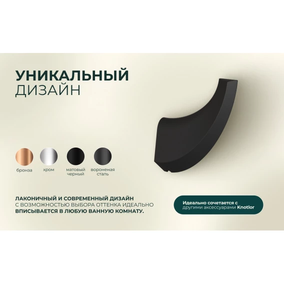 Крючок Knotlor Space RH103BL для ванны, черный матовый