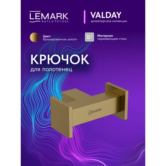Крючок Lemark Valday LMA-8111S1-BRG двойной, для ванны, золотой матовый