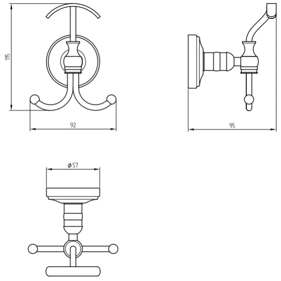 Крючок Migliore Mirella 17283 тройной, для ванны, хром/золотой